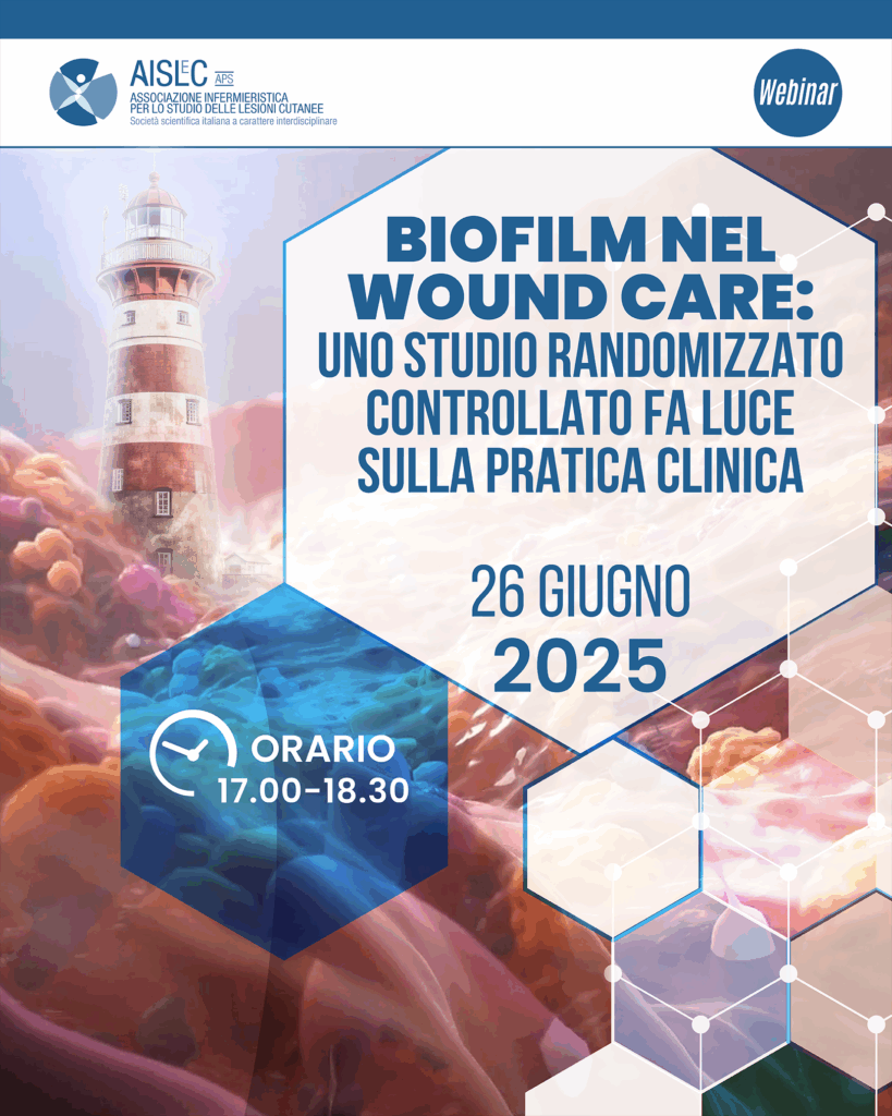 Webinar, lunedì 6 ottobre 2025 Ore 17.00 – 18.30 AISLeC propone un appuntamento formativo online dedicato al tema “Wound Hygiene: un aggiornamento strutturato sull’evoluzione delle attuali Best Practice, con un